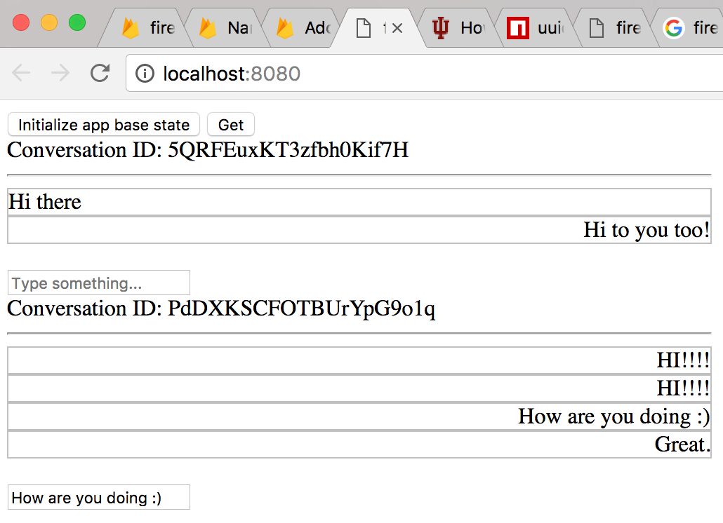 - Only sending and fetching new messages. At this point, the entire conversation is sent and received. I’m not sure how to do this yet using Firestore. Likely some kind of